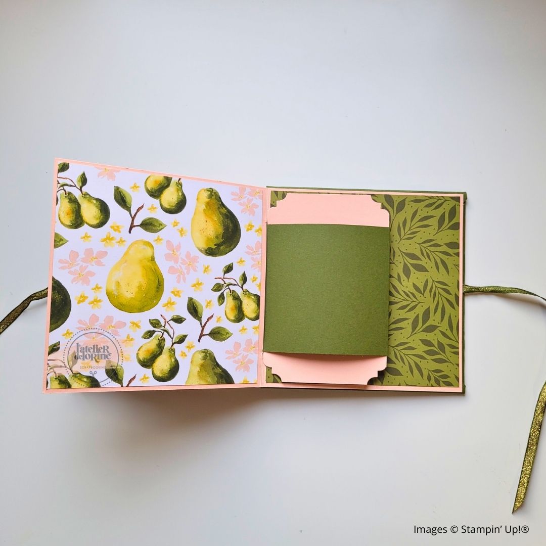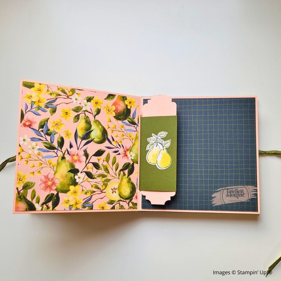 Avec cet album photos artisanal à reliure australienne, capturez la beauté des souvenirs du quotidien : un pique-nique d’été, une promenade champêtre, un repas en famille… Ce projet unique met à l’honneur la superbe collection de papiers design Poires Picturales de Stampin’ Up!®, aux motifs délicats et aux couleurs fruitées.