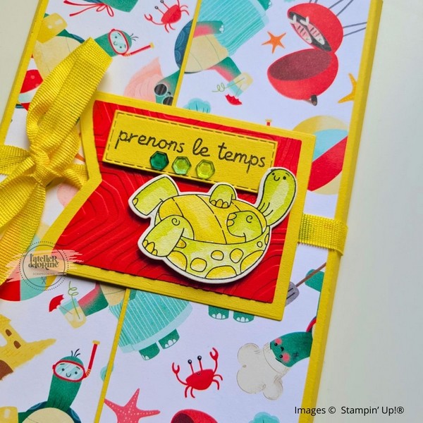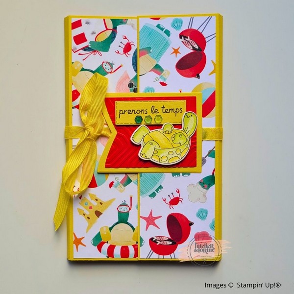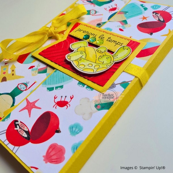 Sur la couverture, la tortue nous glisse un joli message : Prenons le temps. Ce clin d’œil invite à savourer chaque moment. Ainsi, votre album devient un cadeau qui fait du bien. Un présent que vous pouvez offrir à un enfant, à un proche ou à vous-même pour garder un souvenir joyeux des vacances.