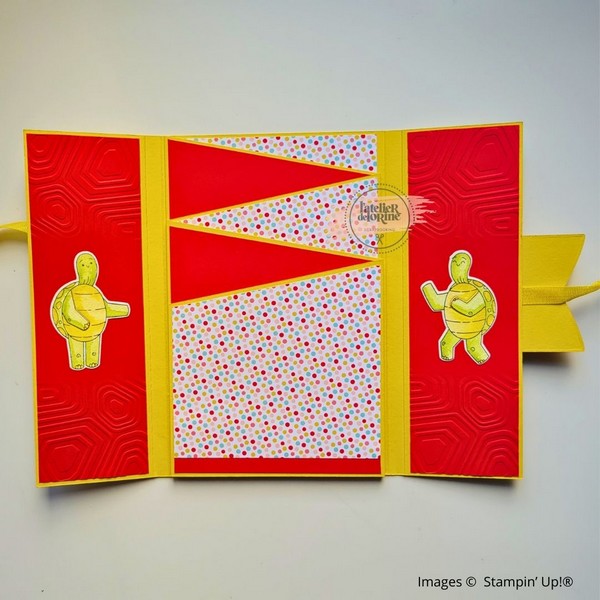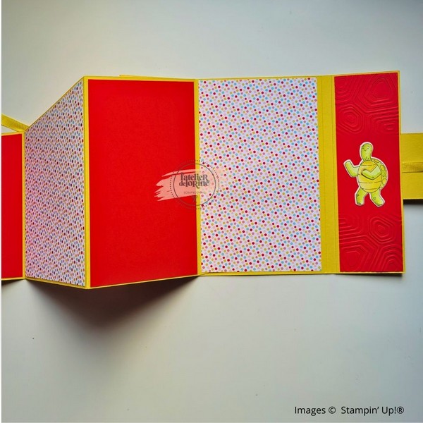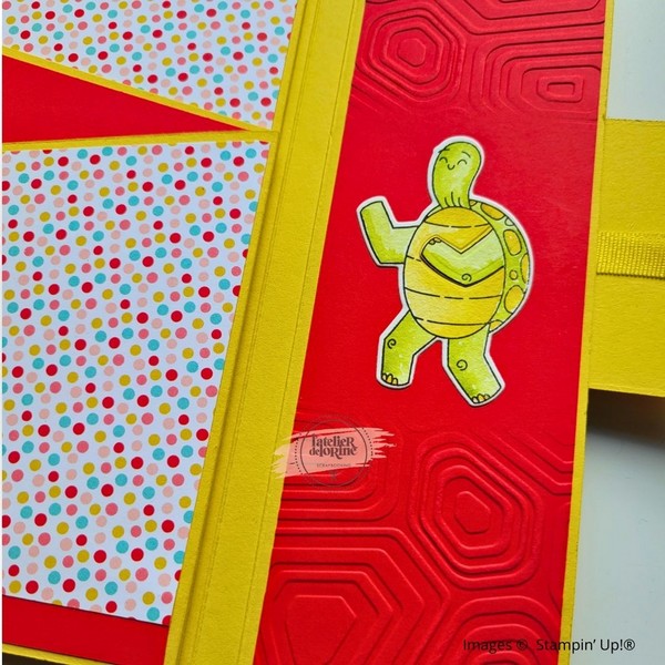 Des tortues amusantes et colorées décorent l’album. Elles sont mises en valeur par une colorisation aquarelle, entourées de motifs d’écailles élégants en relief. Cet ensemble crée un décor ludique et tendance.