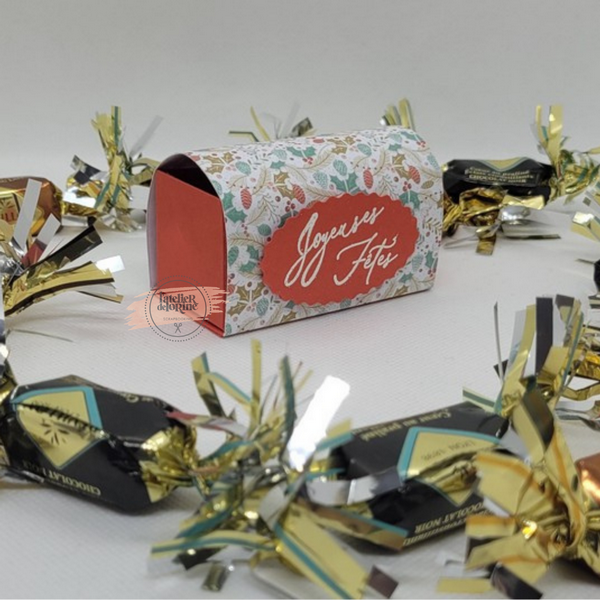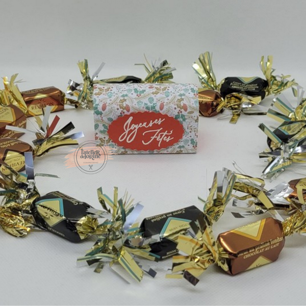 Cette petite boîte gourmande accueille jusqu’à deux chocolats (comme des Ferrero Rocher ou des Lindor, par exemple). Grâce à son couvercle orné de houx et de baies de Noël, accompagné du message Joyeuses Fêtes, elle diffuse instantanément l’esprit de Noël.