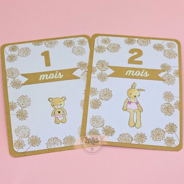 🧸 Cartes étapes bébé doudou rose – “De si doux et précieux moments”