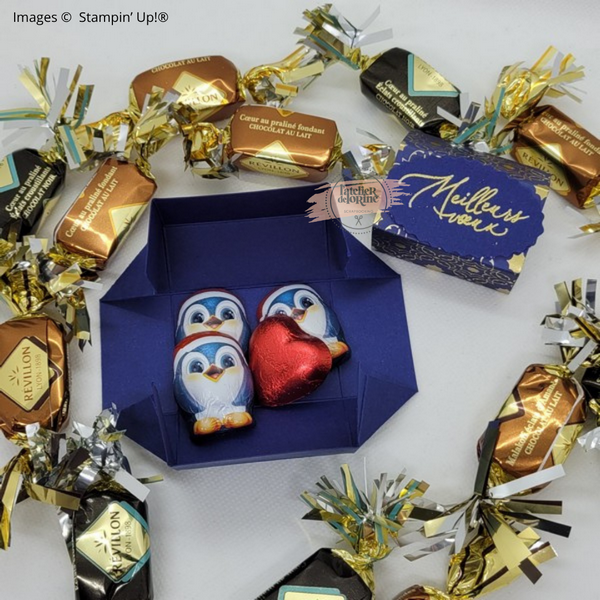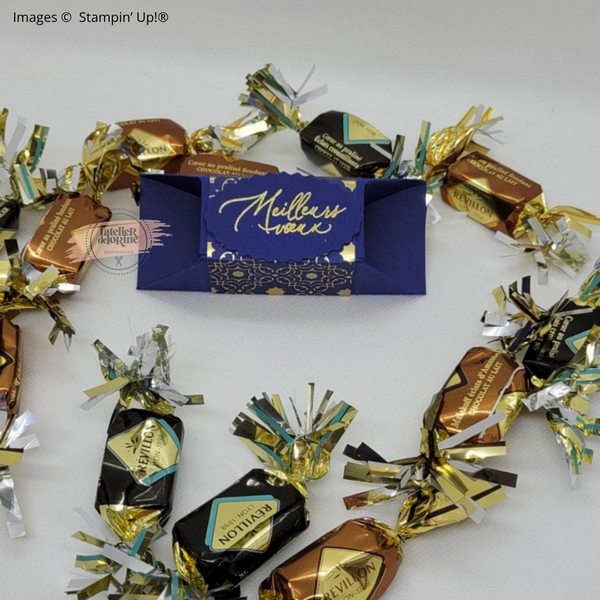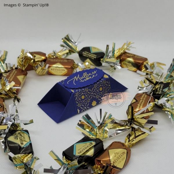 Chaque boîte est soigneusement pliée et décorée à la main. Sa forme inspirée du lingot d’or attire le regard et ajoute une touche chic à votre décoration de Noël. Vous pouvez y glisser quelques chocolats, un bijou ou un mot doux : ce petit écrin deviendra vite un souvenir précieux pour vos convives.