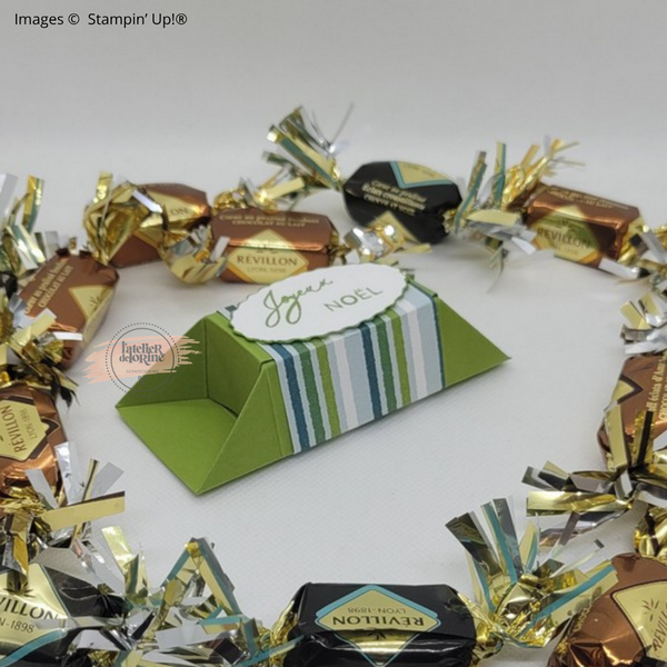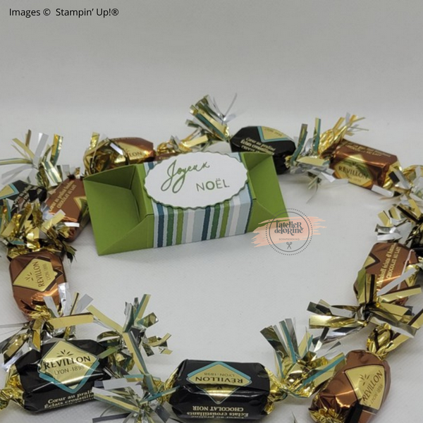 Bien plus qu’une simple boîte, ce lingot d’or rayé vert et bleu est un petit souvenir de fête. Après Noël, il pourra être réutilisé comme écrin ou intégré à votre décoration d’intérieur.