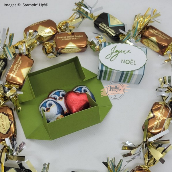 Chaque boîte est soigneusement pliée et décorée à la main avec un grand souci du détail. Son design original, inspiré du lingot d’or, attire le regard et s’harmonise facilement avec toutes vos décorations de Noël. Vous pouvez y glisser quelques chocolats, un bijou ou un mot d’attention : ce petit coffret deviendra un souvenir précieux pour vos convives.