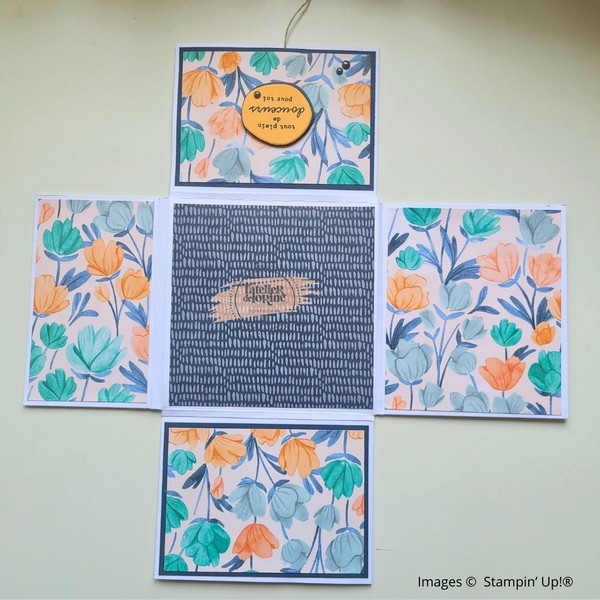 Ce mini album 30×30 pliable intitulé « Tout plein de douceurs pour toi » est une création artisanale remplie de tendresse. Il est réalisé à partir d’une seule feuille de papier 30×30 cm blanche. En l’ouvrant, on découvre quatre rabats qui dévoilent un univers fleuri et lumineux.
